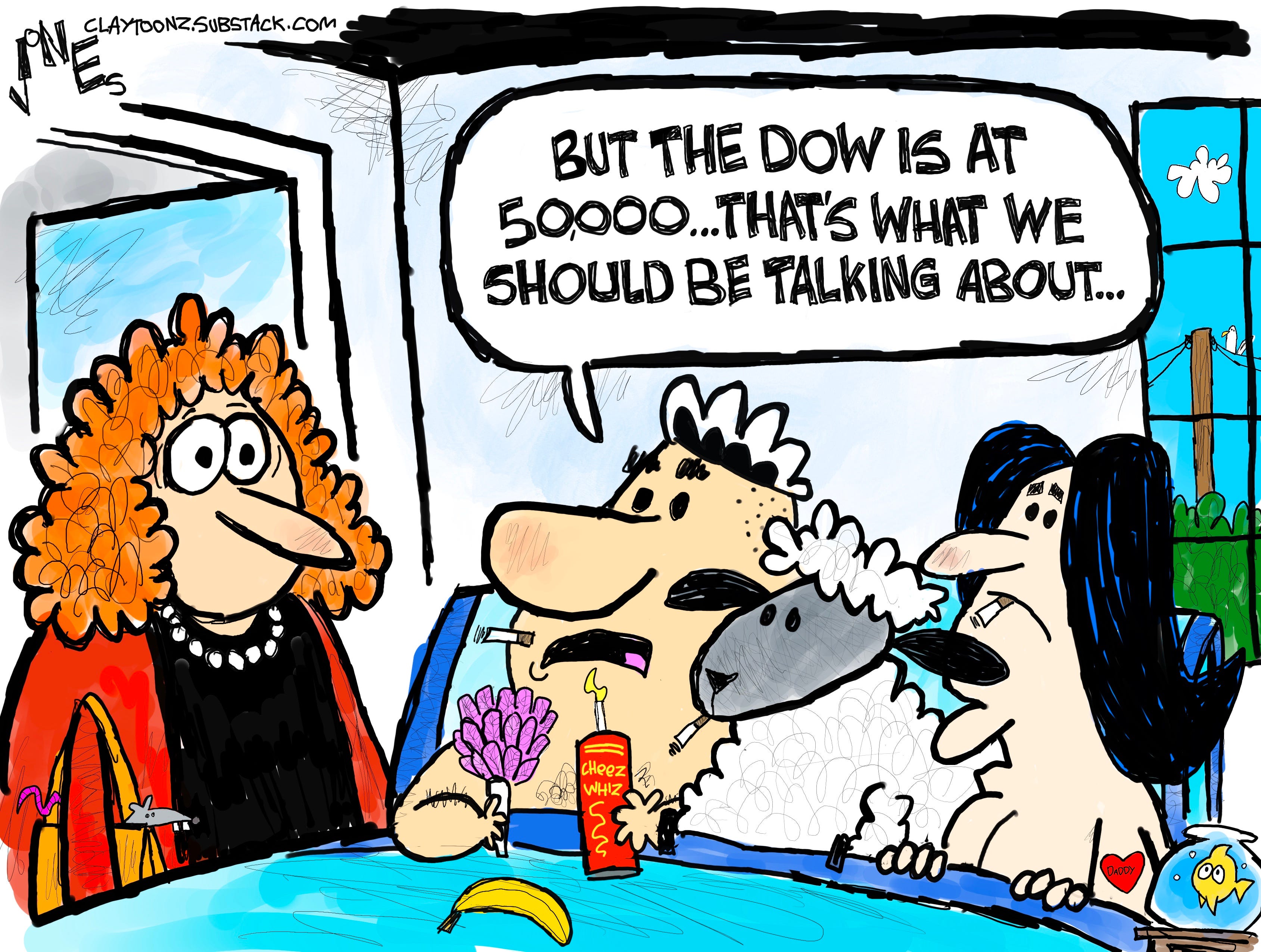 In case you don't remember (and if you are a MAGAt, you don't), when Representative Jerry Nadler asked the Attorney General how many of Epstein's billionaire co-conspirators she has indicted so far, she deflected by talking about the Dow, boasting for Donald Trump that it was over 50,000 (dollars).