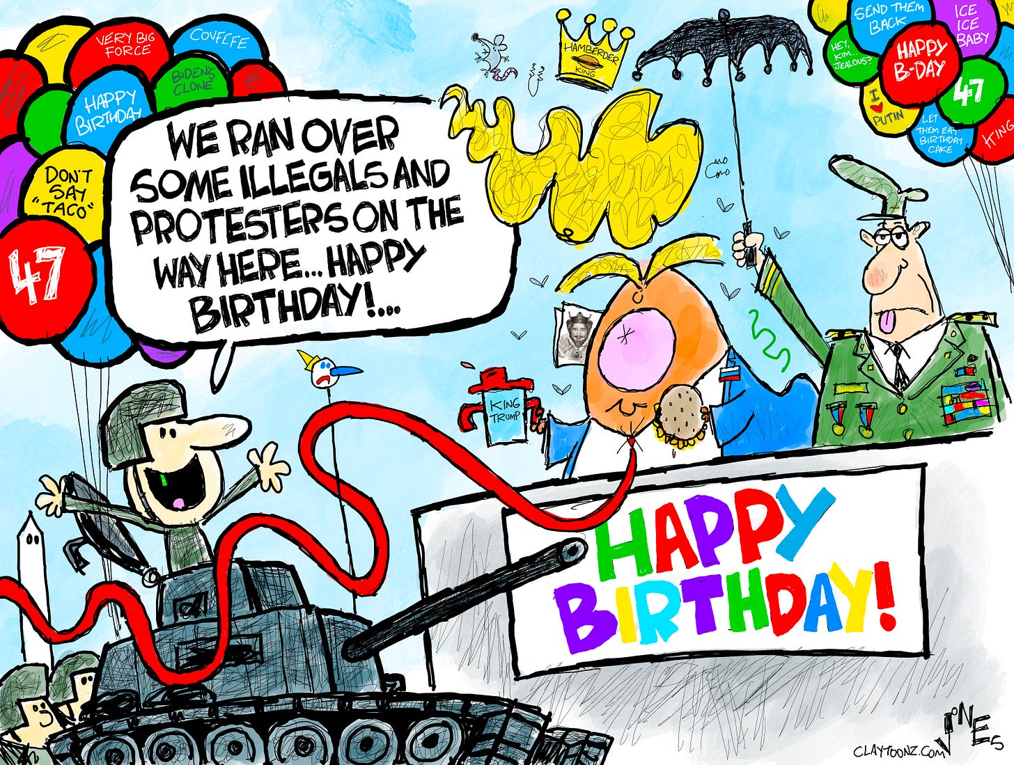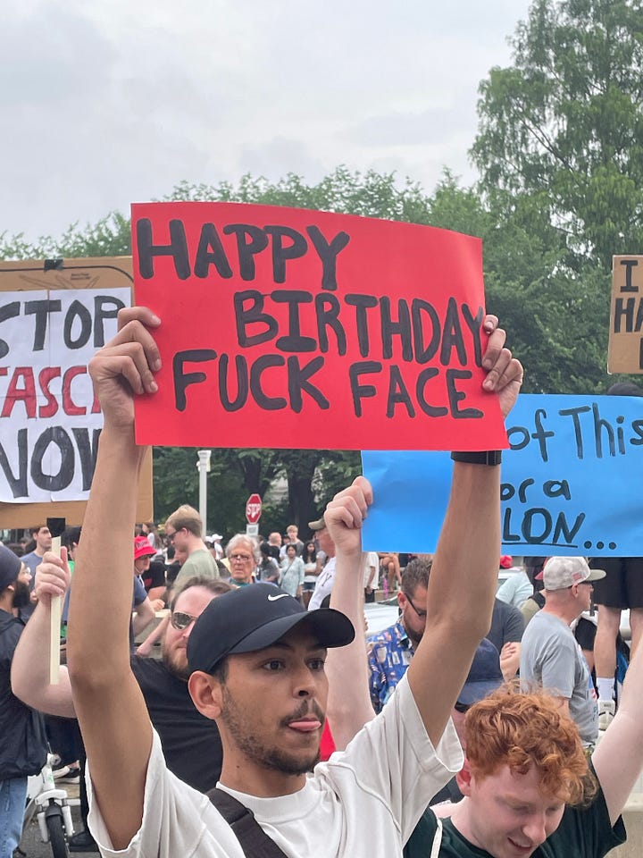 Of course I was looking forward to your take on the Big Beautiful Birthday Bash, but honestly, from everything I've read it seems you didn't miss much. We had more people just at the St. Paul (MN) No Kings march, let alone at all of the demonstrations nationwide, than they had at that parade--including all the people who were part of the parade.
