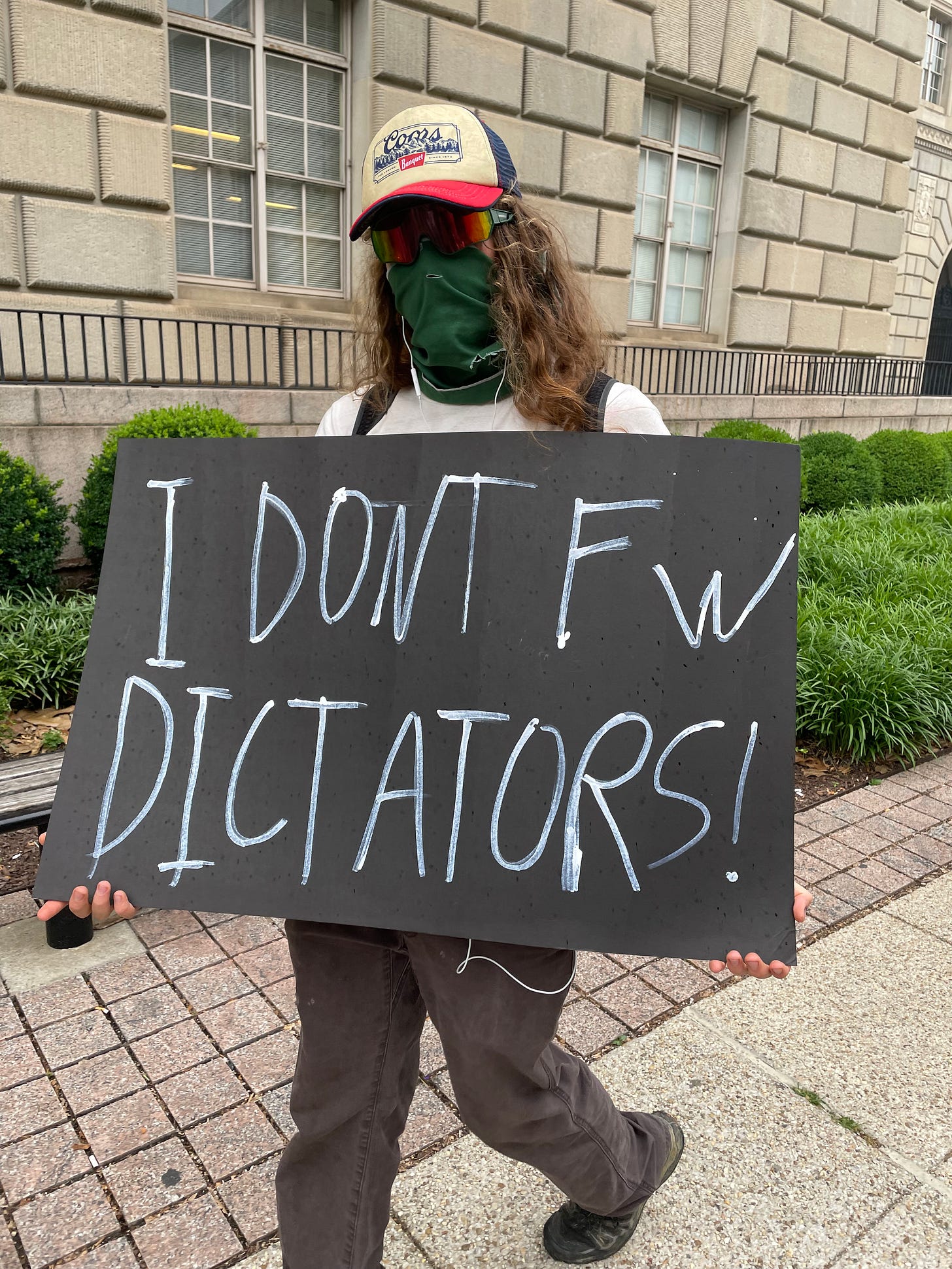 This guy walks up and asks how much we were getting paid to protest. This is a conspiracy theory from the right that’s not based on any fact. It’s more projection because Trump has paid people to be at his rallies and events. So, I don’t feel bad about asking him how much he’s paid to F his mom. It wasn’t nice of me, but I think it’s the equivalent of what he said. If my mother was still here to see this, she would scold me (CLAYTON ROBERT JONES! You don’t ask strangers how much they’re paid to fuck their mothers and then call them a “fuckface” on Constitution Avenue in the nation’s capital), then go into another oom and laugh her ass off. My mother taught me to respect people, but she also taught me not to take any shit.