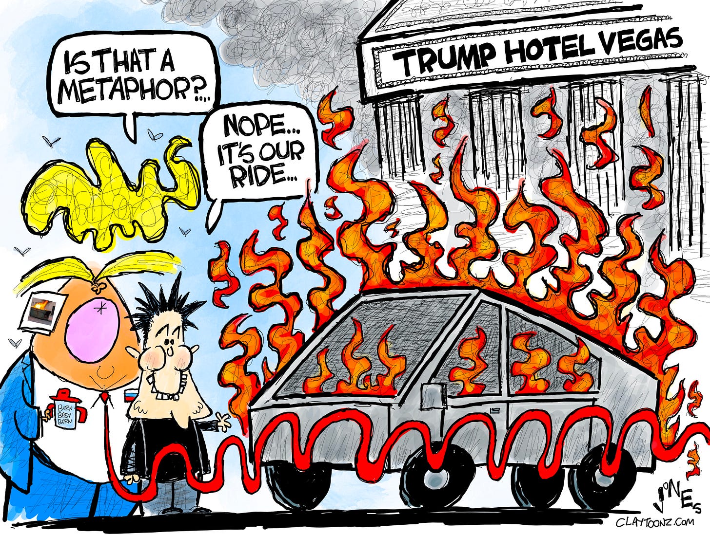 When I first heard of the cybertruck exploding in front of Donald Trump’s shitty hotel in Las Vegas, I didn't immediately think it was intentional. I just thought it was your typical daily exploding Tesla.