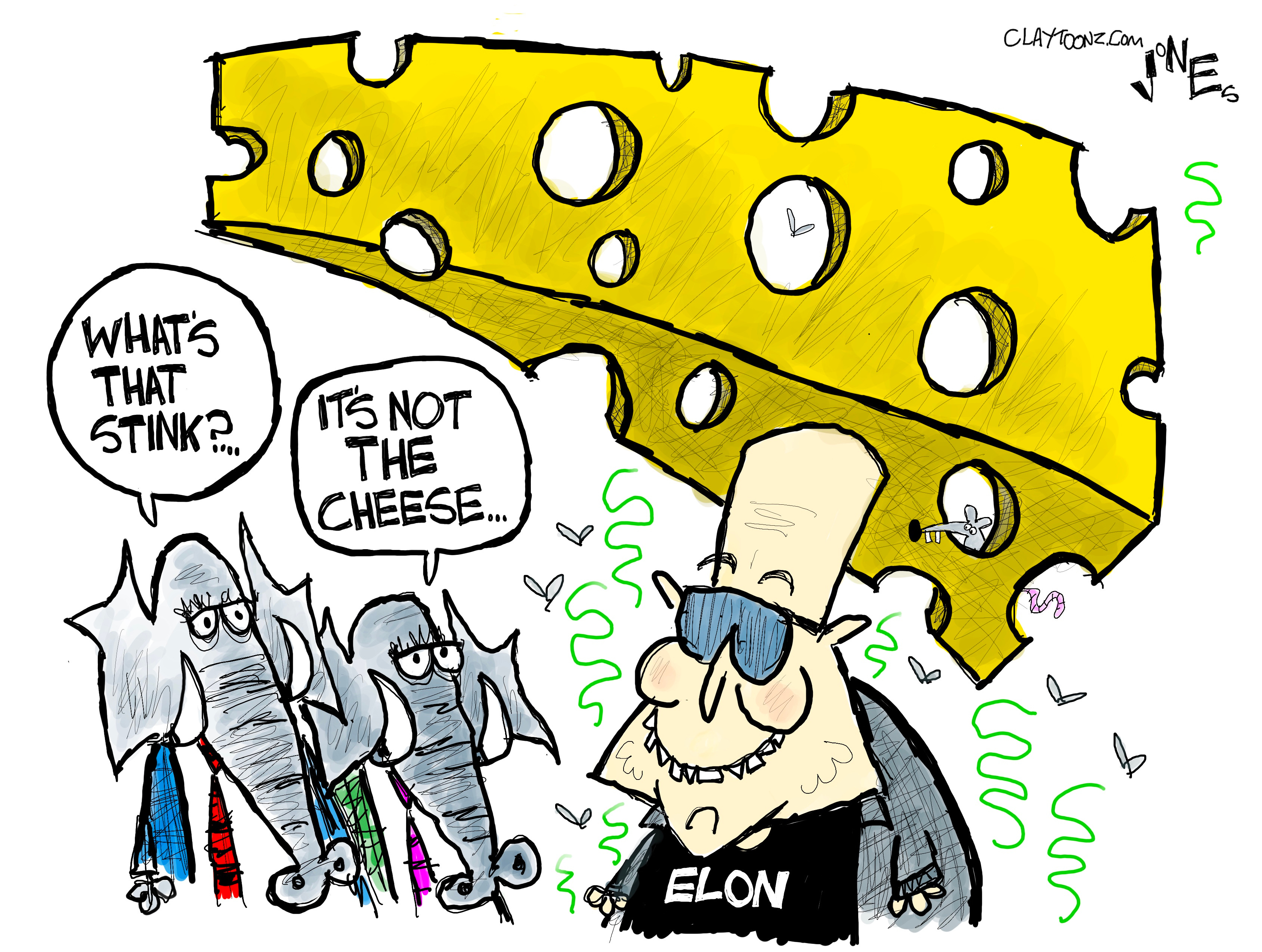 Signed prints: Each signed print costs $40.00. Every cartoon at Claytoonz is available. Payment is accepted through PayPal, Venmo (clay-jones-87), or snail mail to Clay Jones, P.O. Box 3721, Fredericksburg, VA 22402. Add to the note what you’re purchasing.