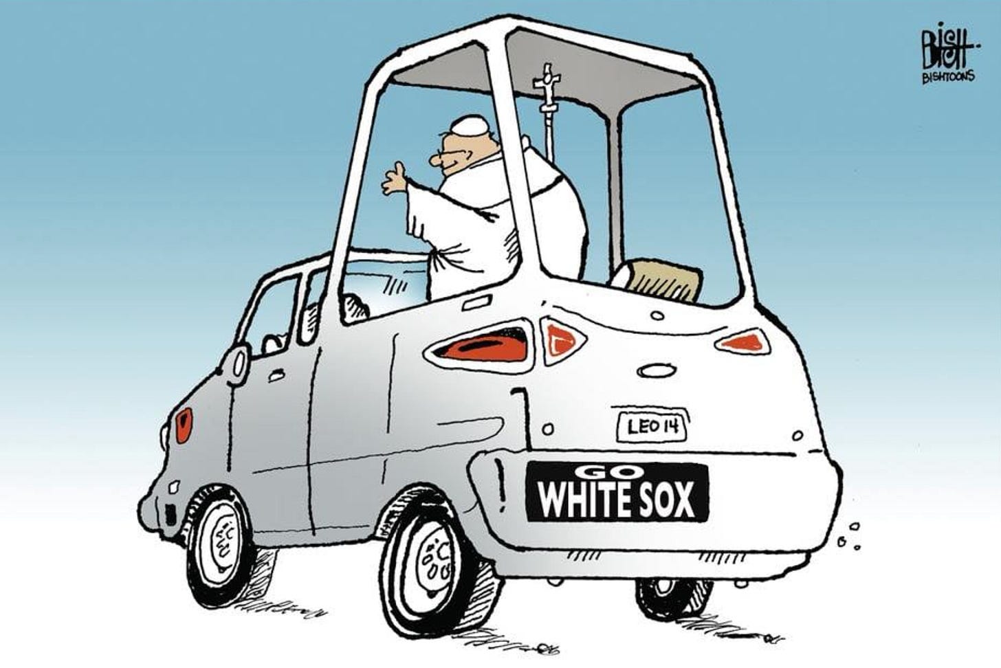 One of the first things I was curious about with our Chicago pope was if he is a Cubs fan. The Chicago Cubs posted on their famous marquee above Addison Street at Wrigley Field that Pope Leo is a Cubs fan. They got it wrong. So did some cartoonists.