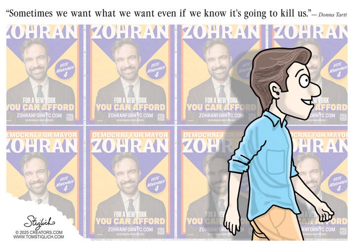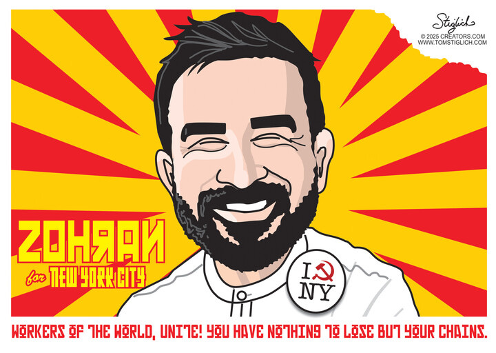 Here, Chip is fear-mongering about electing Zohran Mamdani as mayor of New York City. I don't really have a problem with this cartoon either. While I don't agree with it, at least Chip isn't lying and is only expressing his uninformed opinion. At least he's not engaging in islamophobia…this time.