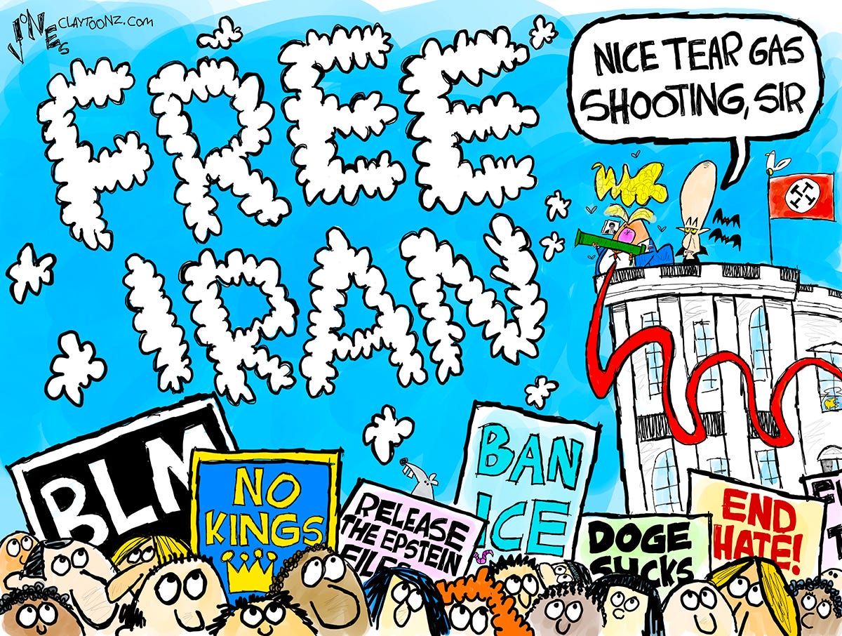 Yes, Donald Trump wants Iran to show humanity toward protesters…unless those protesters are Black Lives Matter in Lafayette Park, which he had cleared out with tear gas because he needed to pass through there for a photo op where he was holding an upside-down Bible. Or unless they're protesting ICE in Los Angeles, where he ordered the National Guard to put them down as he accused them of holding riots. Or unless they're protesting ICE in Portland, where two agents just shot a couple. Or unless they are protesting ICE in Minneapolis, where he is sending in 1000 more ICE agents after they shot and killed Renee Nicole Good.
