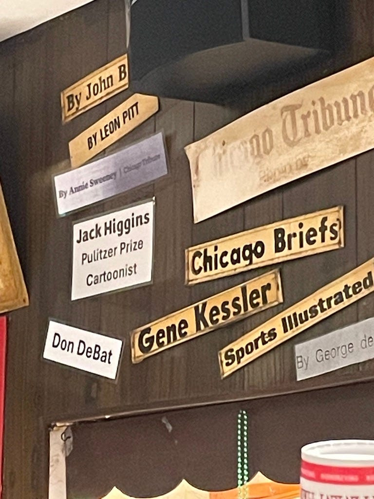 I was glad to see Jack Higgins’ name on the wall. He was a huge influence on my work, and he was very Chicago. I met him once and he was a hilarious guy who laughed his ass off. He also drew a penis in my sketchbook. I loved the guy, and I wish he were still here. I would have loved to have shared some Old Styles at the Billy Goat with Jack. Chicago might have had the best political cartoonists at one time with Higgins, Jeff MacNelly, and Dick Locher. Imagine reading those guys in your local papers every day.