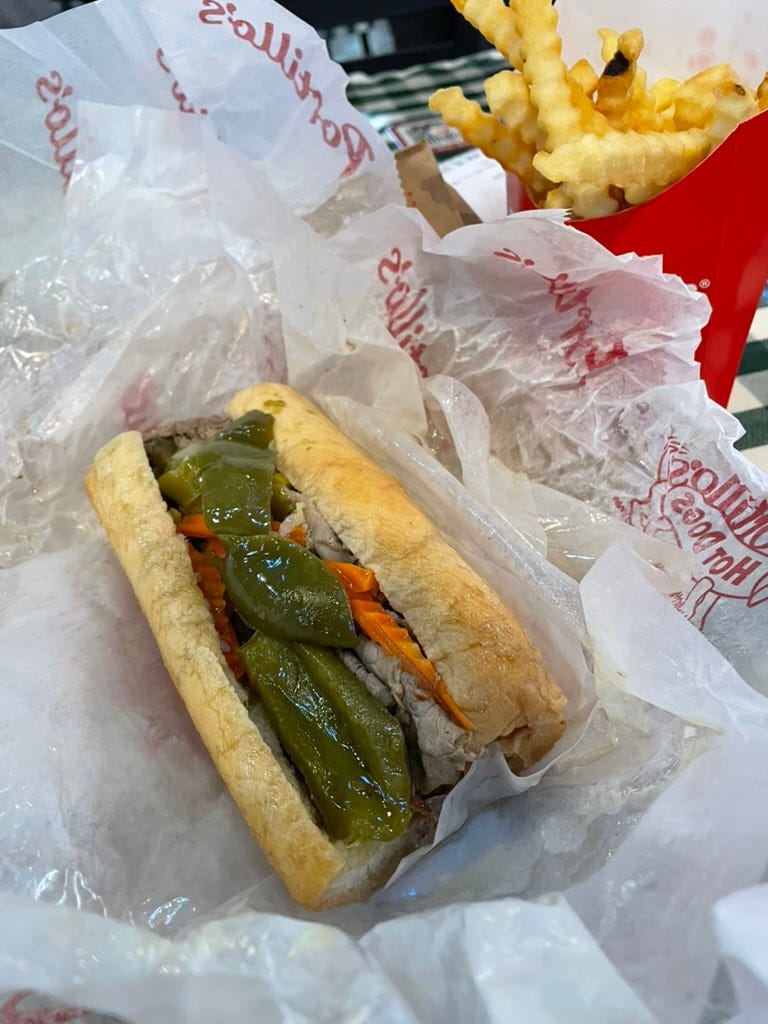 That’s the Italian beef sandwich, which is from Portillo’s. Yes, the sandwich is “slightly” dipped. It was a mess.