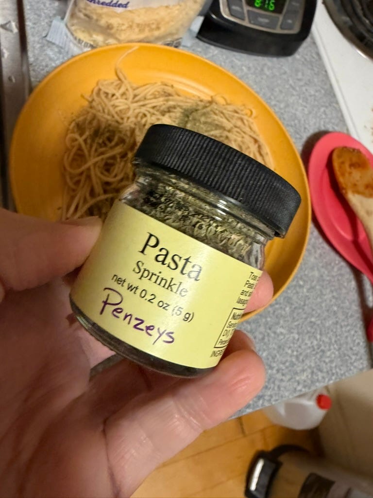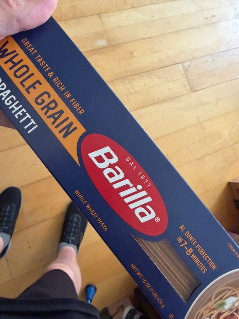 Side note: Ever try gluten free pasta? My kid convinced me to try going gluten free even though I don’t have any signs of celiac disease. She did and her various joints felt better. Seems to have worked for me, too. Anyway, the gluten free pasta turns out to be pretty good.