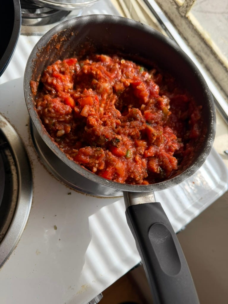 The ingredients included an onion, a bell pepper, and a red pepper.