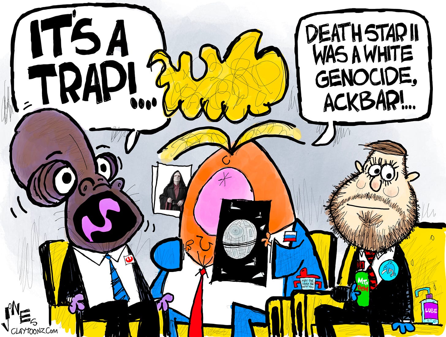 Support your local cartoonist: If you want to support the cartoonist, please donate through PayPal to clayjonz@gmail.com, Venmo to clay-jones-87, or snail mail it to Clay Jones, P.O. Box 3721, Fredericksburg, VA 22402. All support is appreciated.