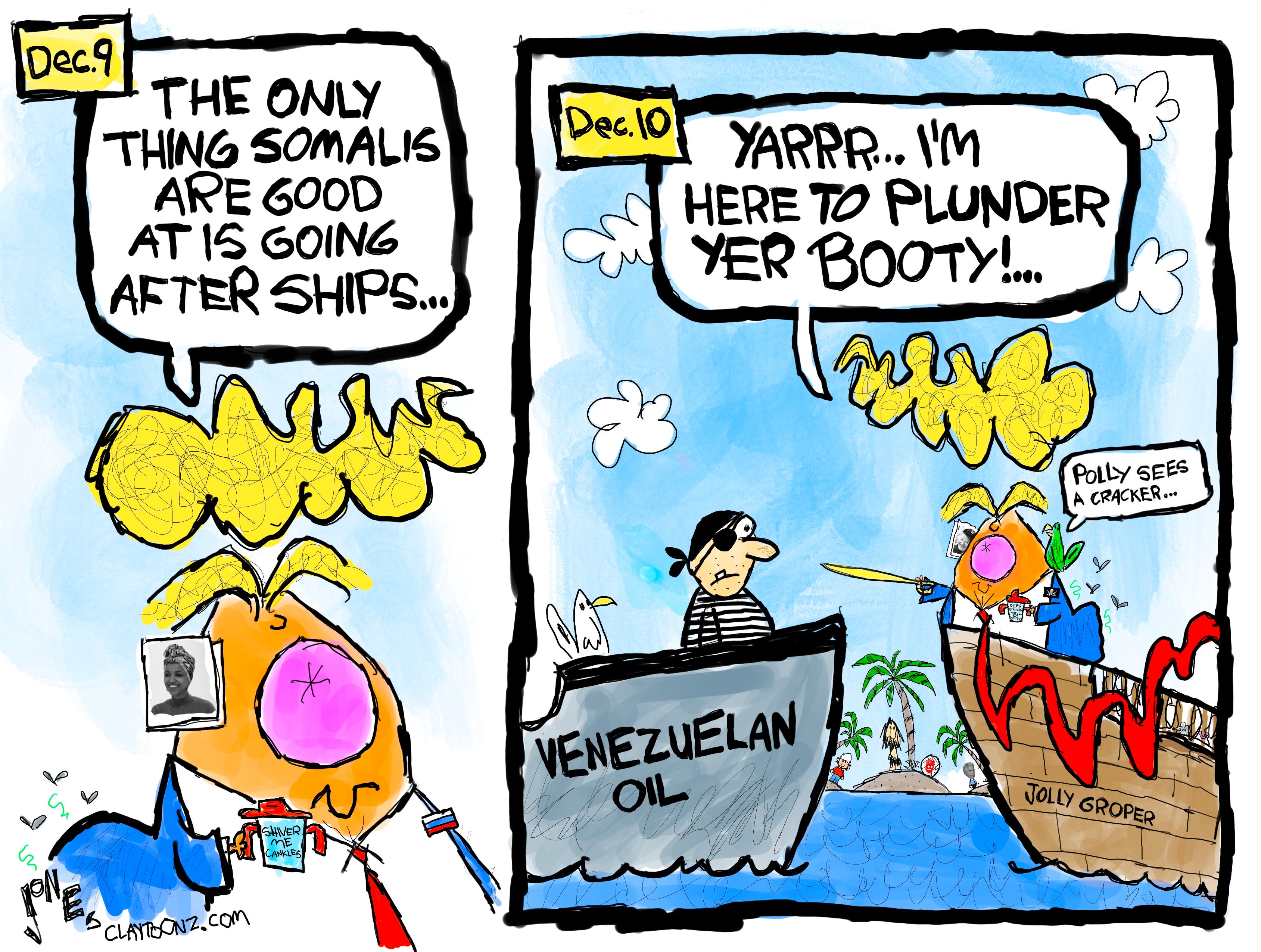 And the very next day, Donald Trump went after a ship. The Trump regime seized an oil tanker sailing from Venezuela with Venezuelan oil, and Trump said afterward that we are going to keep the oil. I guess Somalians aren’t the only ones good at piracy.