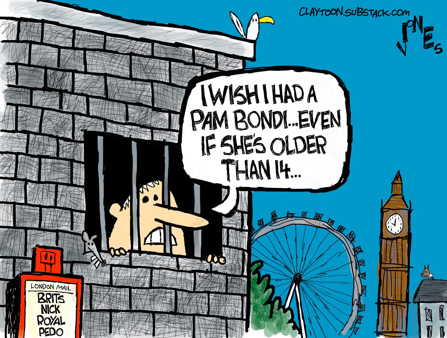 And while the king is willing to do what is right and surrender his younger brother to authorities and the scorn of the British public, Donald Trump is building a system to protect himself and other billionaire pedophiles. His Attorney General, Pam Bondi, is still breaking the law by failing to release the Epstein files.