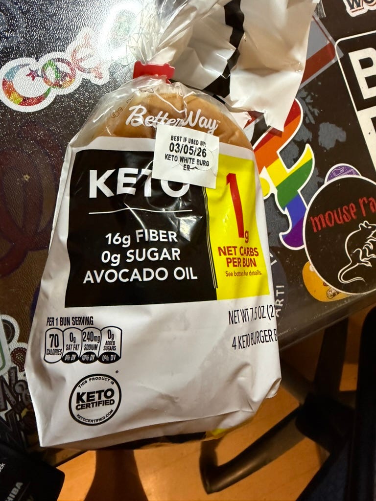 I can still have cheeseburgers. That doesn't mean I'm going to McDonald's, or I can order from Five Guys, or get a Whopper. I do miss Whoppers. But the best way for a diabetic to enjoy a burger is probably to have them without buns, heavy with vegetables, and to make them at home. So I ordered some keto buns.