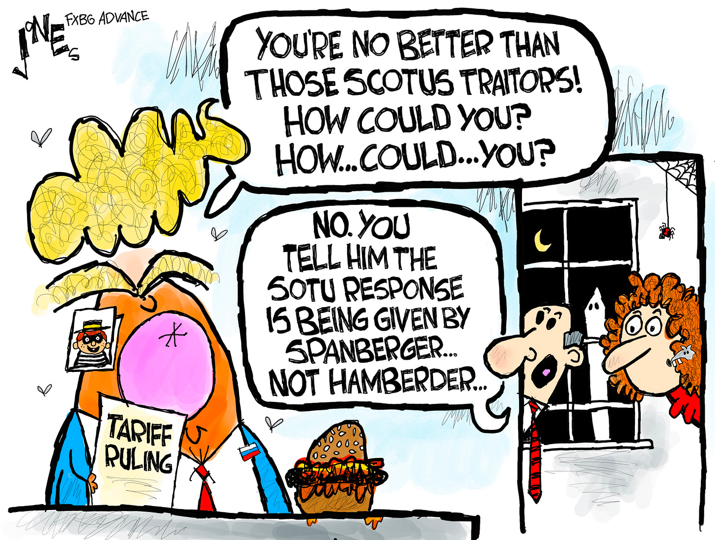 Governor Abigail Spanberger has been selected to give the Democratic response to Donald Trump's State of the Union address. A response from the party out of power to the SOTU has been a tradition since 1966, which apparently is news to some conservative cartoonists and propagandists.