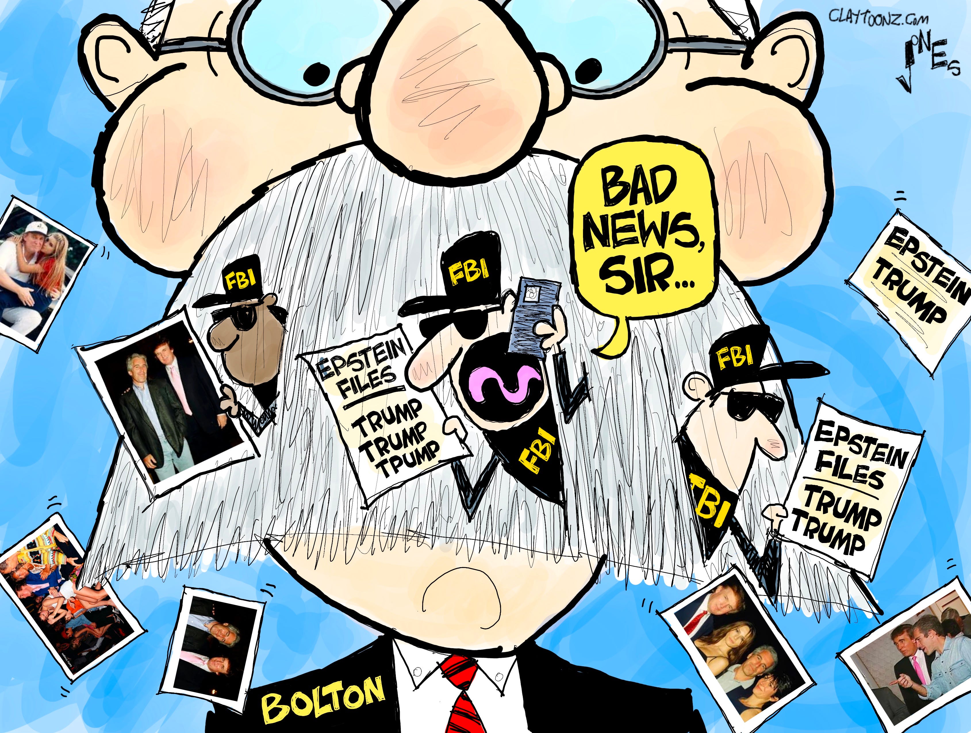 Signed prints: Each signed print costs $40.00. Every cartoon at Claytoonz is available. Payment is accepted through PayPal, Venmo (clay-jones-87), or snail mail to Clay Jones, P.O. Box 3721, Fredericksburg, VA 22402. Add to the note what you’re purchasing.